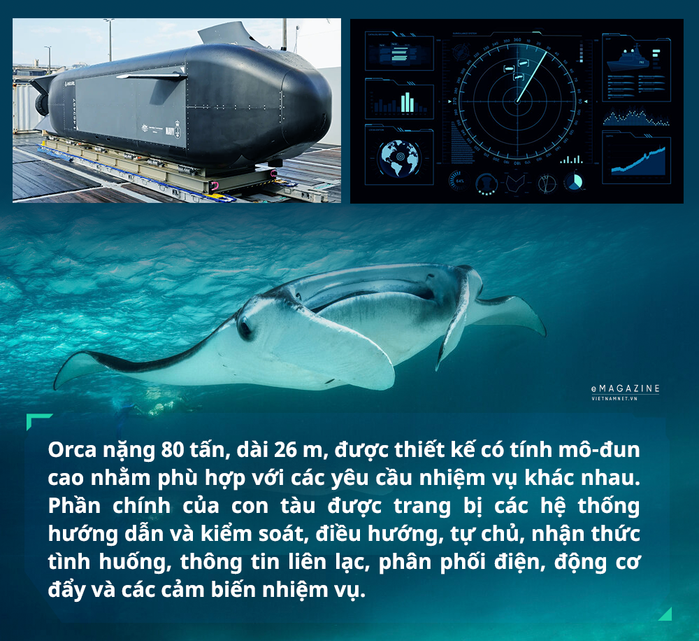Tháng 12 năm ngoái, Hải quân Mỹ hé lộ mẫu UUV Orca do Boeing chế tạo, cho biết đây là “tàu ngầm diesel-điện không người lái, tự động, tiên tiến với mô-đun tải trọng để thực hiện nhiều nhiệm vụ khác nhau”.