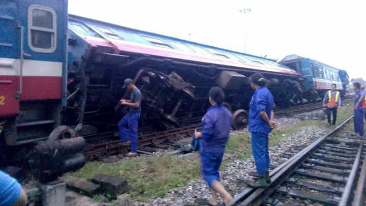 Đoàn tàu chở khách từ Lào Cai về Hà Nội bất ngờ một toa tàu bị trật bánh nằm nghiêng trong ga Yên Viên – Hà Nội.