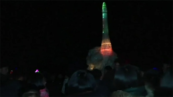 Một mô hình tên lửa tầm xa Hwasong-15 của Triều Tiên đã trở thành tâm điểm của lễ hội băng Bình Nhưỡng chào đón năm mới 2018.