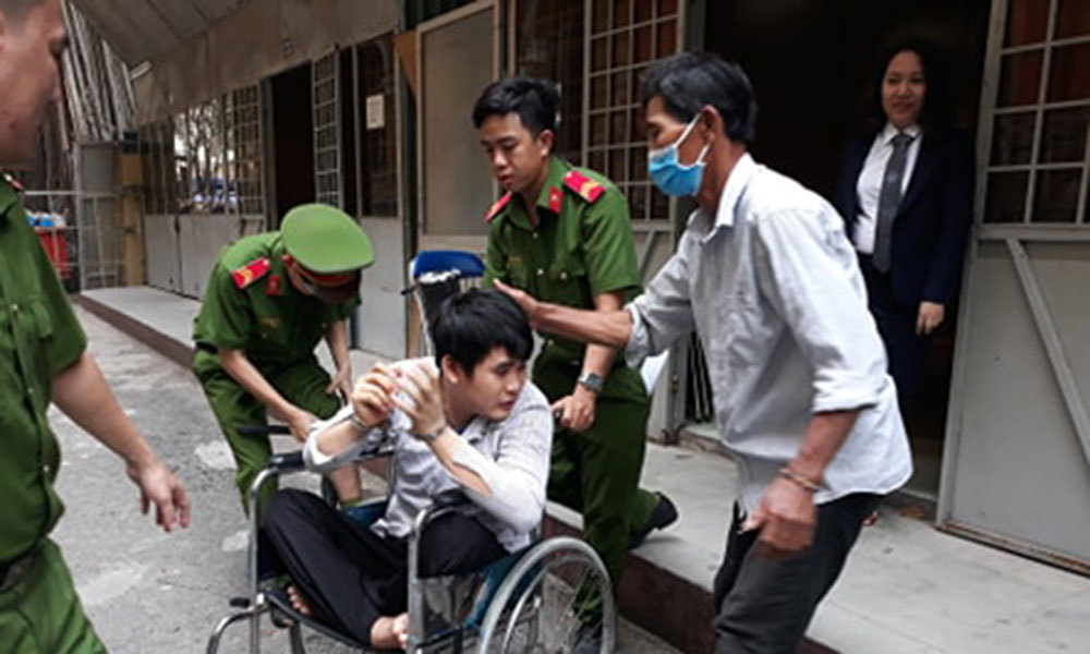 Sau khi bị bắt, bị cáo mắc bệnh teo cơ khiến chân bị liệt nên ngày ra tòa, Định phải ngồi xe lăn.