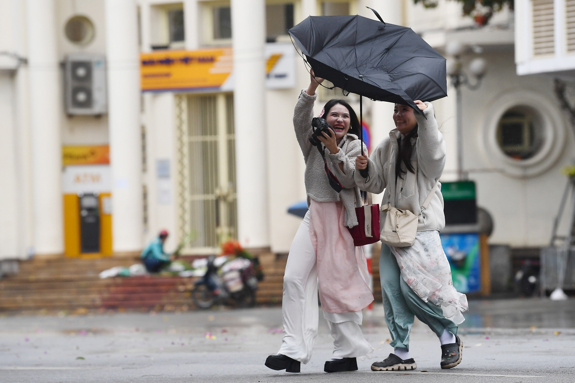 Không khí lạnh tăng cường kèm theo mưa và gió mạnh ùa về miền Bắc khiến trung tâm Hà Nội vắng vẻ, phố đi bộ hồ Gươm thưa thớt người dân và du khách, sáng 26/1.