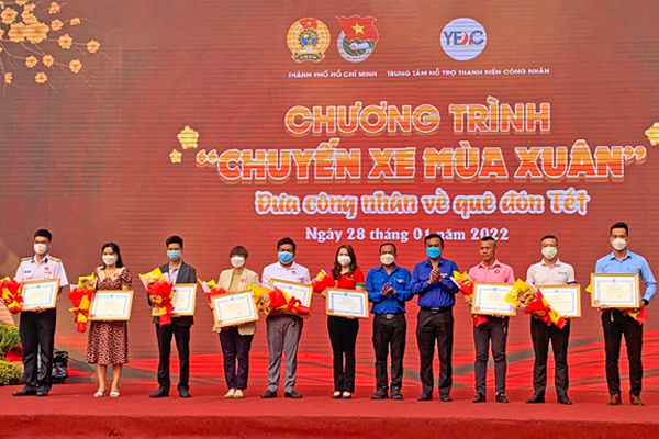 VietCredit cùng Thành đoàn TP.HCM hỗ trợ xe đưa công nhân về quê đón Tết