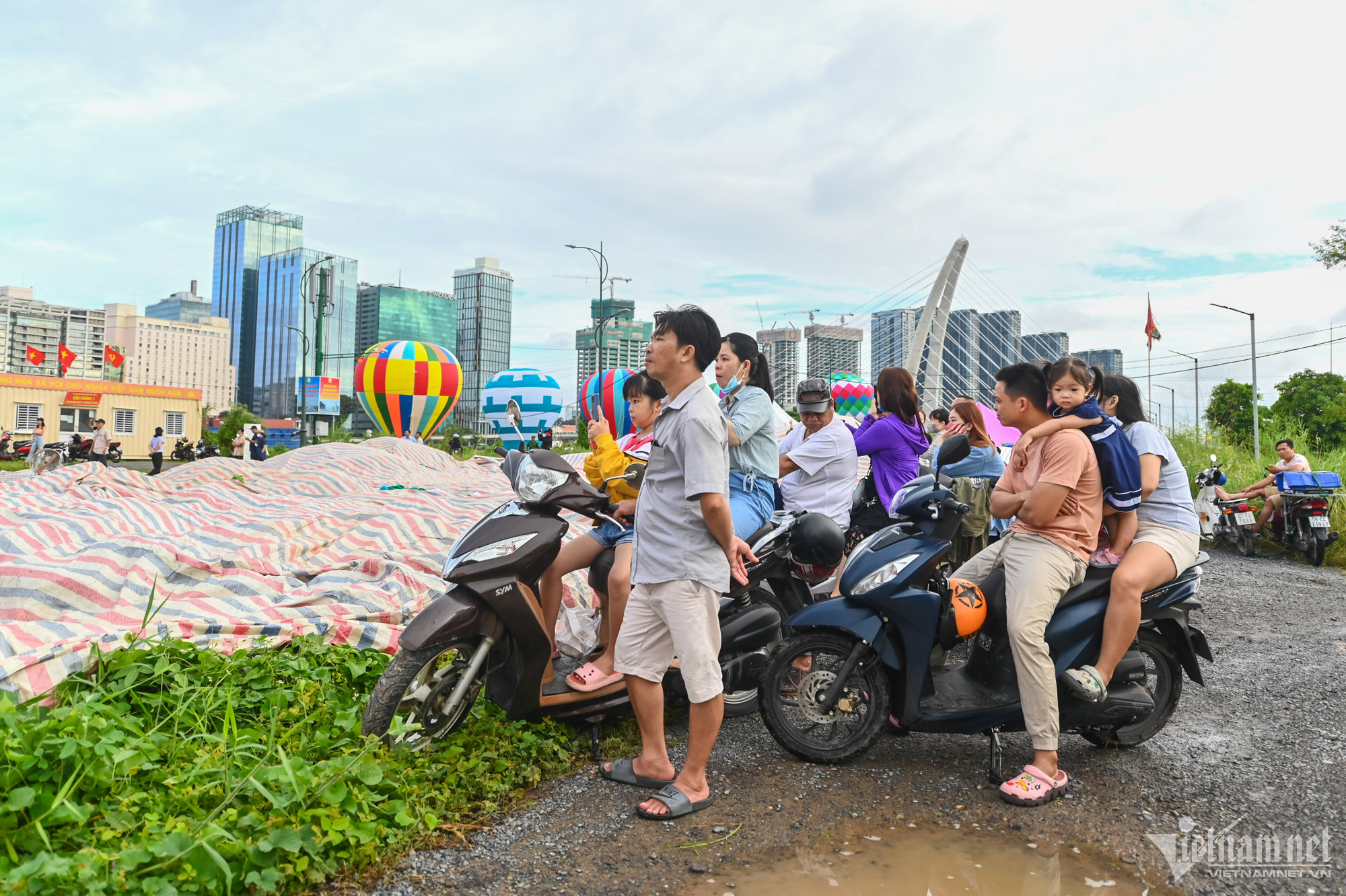 Ngay từ 7h, nhiều người dân đã có mặt để đón xem khoảnh khắc khinh khí cầu bay lên trên bờ sông Sài Gòn.
