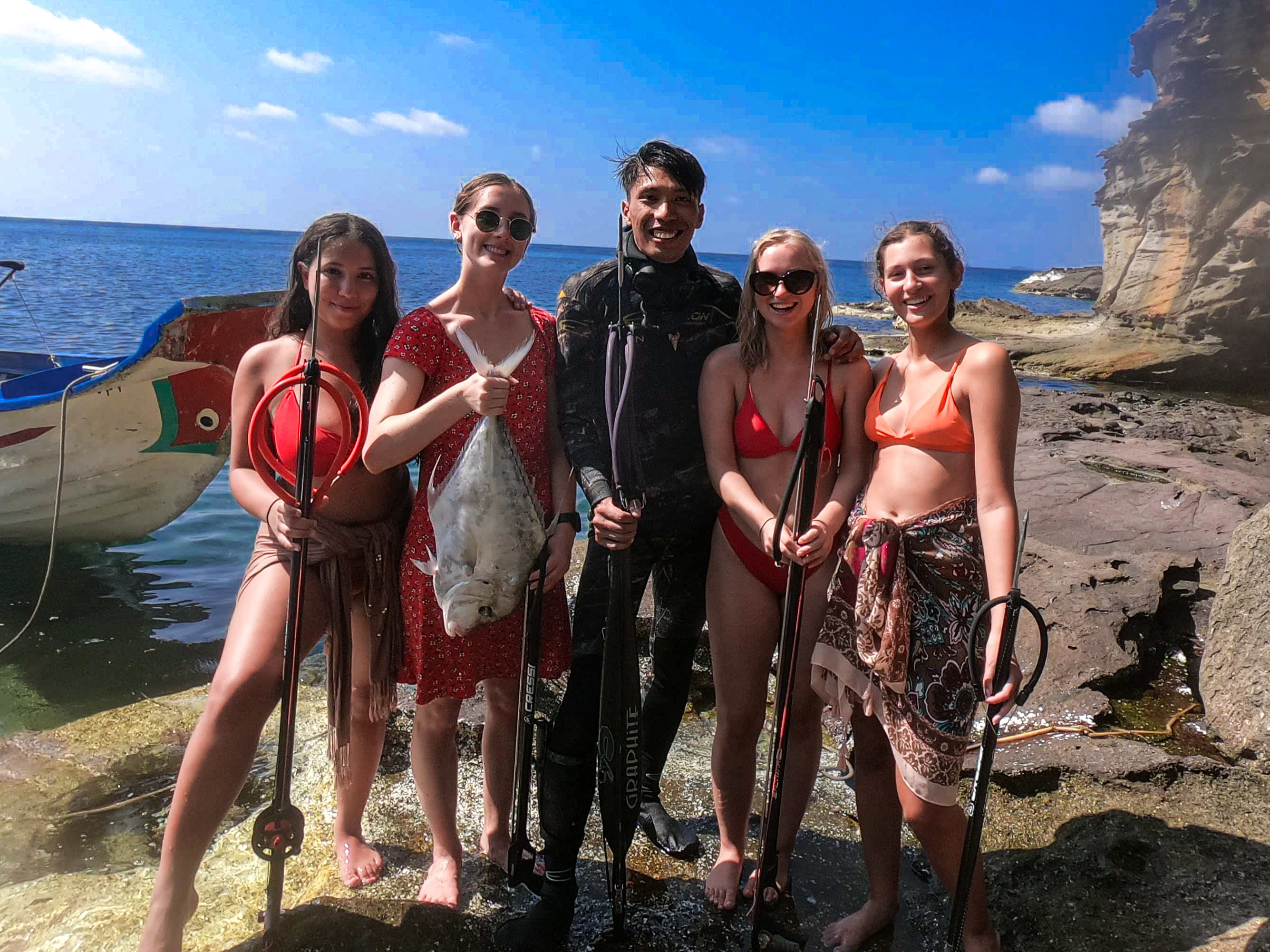 Nhiều người bạn và du khách nước ngoài tham gia lặn biển, săn bắt cá cùng Nguyên