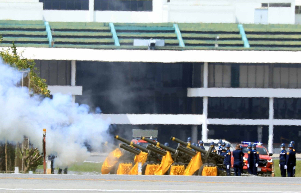 Khi Chủ tịch nước và phu nhân bước từ chuyên cơ xuống, 21 phát đại bác được bắn chào mừng đoàn.