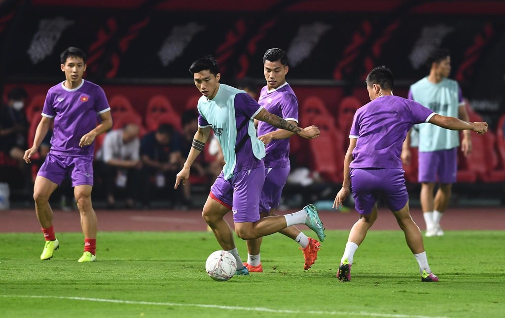 Các tuyển thủ Việt Nam khởi động trước trận đấu