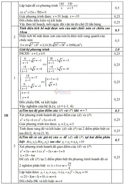 Lời giải đề thi lớp 10 môn Toán của Hà Nội