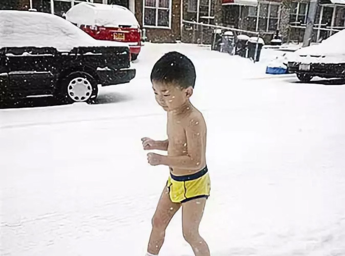 Ông bố bắt con 4 tuổi cởi trần chạy trong tuyết, tự chèo thuyền ra biển