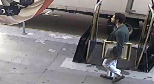 Kẻ trộm ngang nhiên mang bức tranh đi mà không gặp bất cứ sự cản trở nào. Ảnh: AP