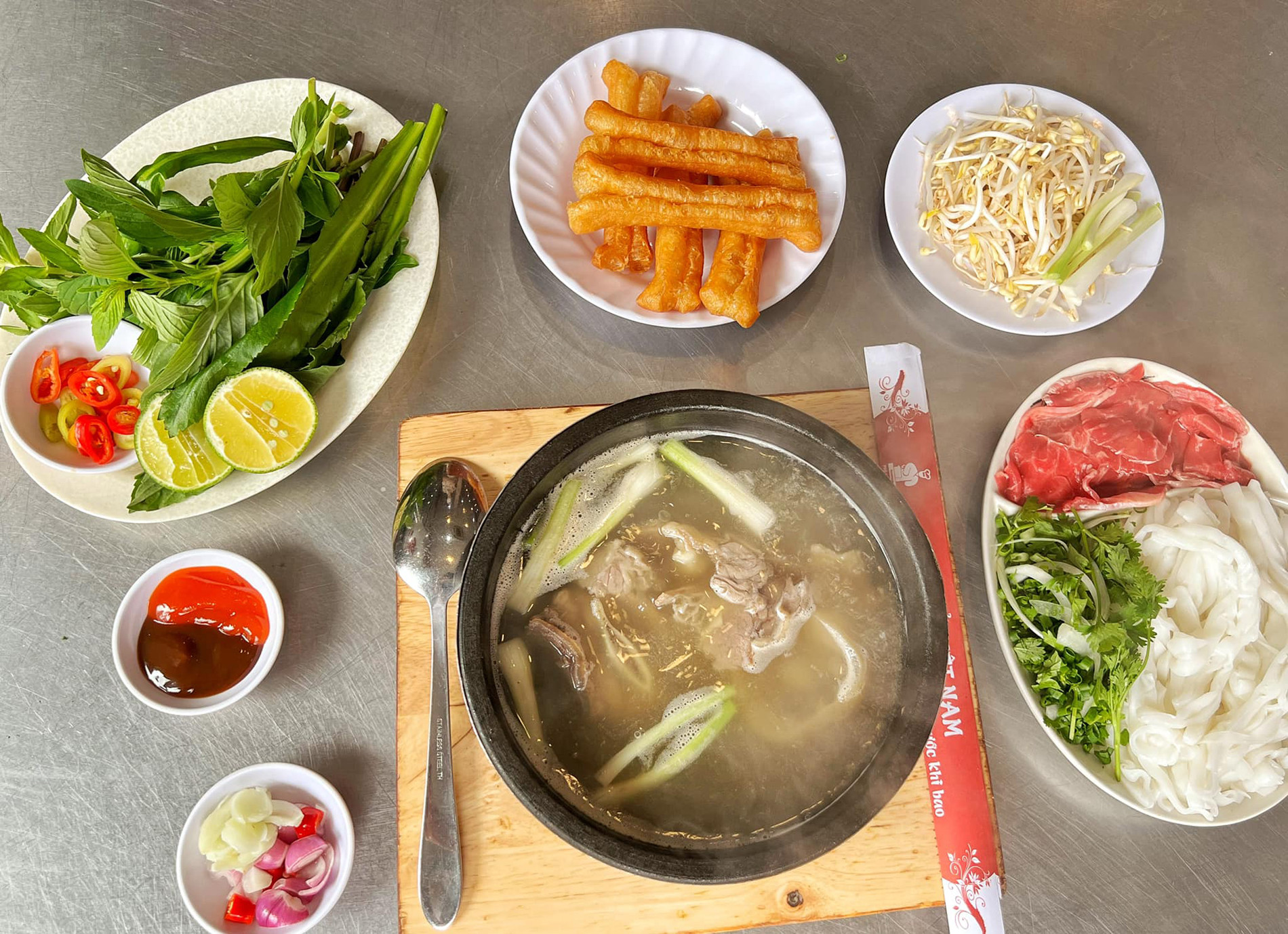 Anh Trường cho hay, món phở ở đây có hương vị thiên về kiểu Bắc, song sử dụng các loại gia vị của cả 3 miền như tương ớt của miền Bắc, tương đen và tỏi của miền Nam, còn miền Trung có hành ngâm, giấm.