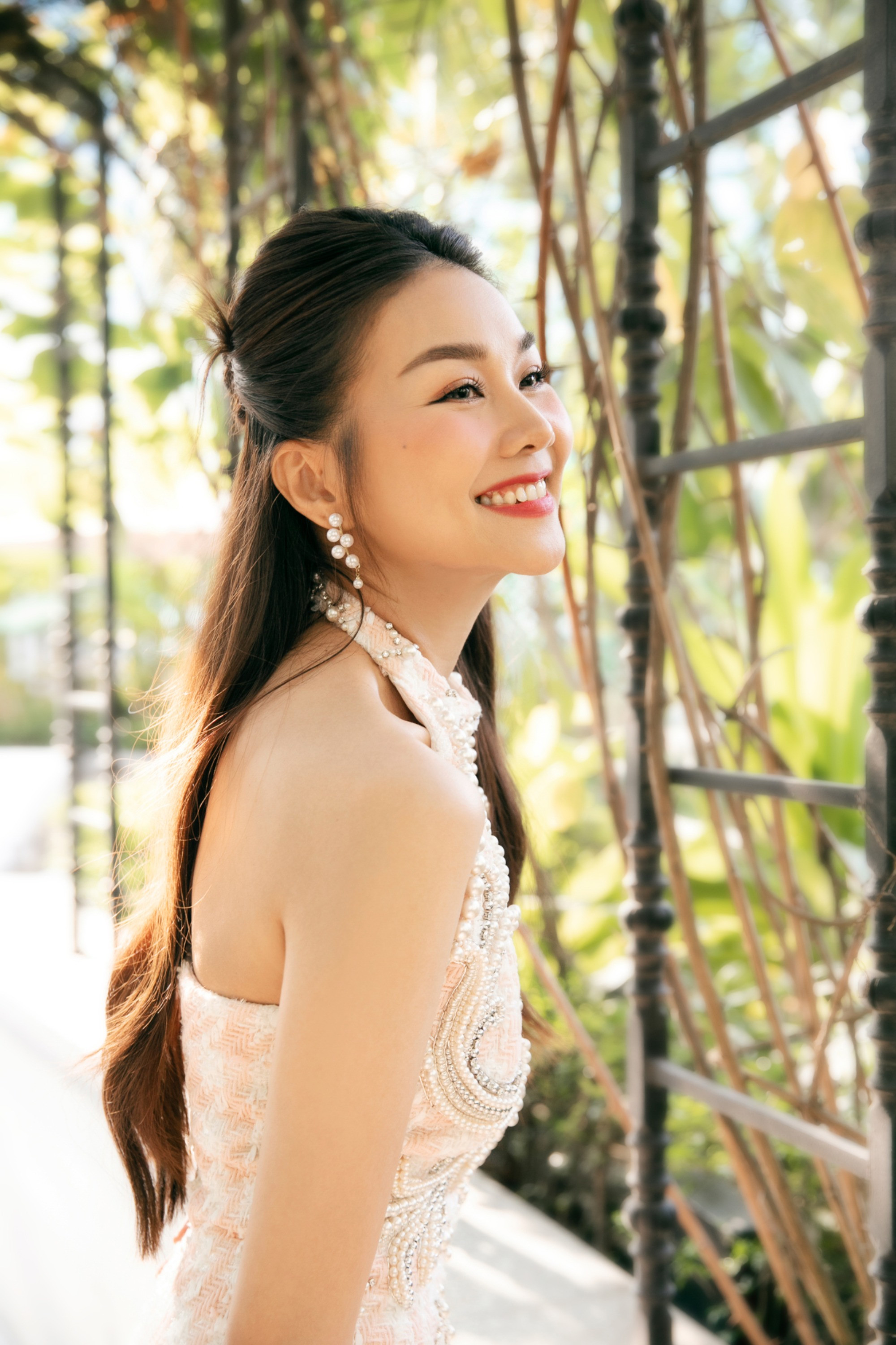 Hoa hậu Ngọc Châu mặc váy ngắn ôm sát, đính kết lông vũ mềm mại, kết hợp găng tay tông trắng tạo vẻ cổ điển.Á hậu Phương Anh xinh đẹp, ngọt ngào trong thiết kế đính lông vũ.Thanh Thanh Huyền mặc đầm đuôi cá màu đỏ, thiết kế ôm sát khoe khéo đường cong cơ thể, kết hợp phong cách trang điểm quyến rũ. Cô là MC của buổi công bố.