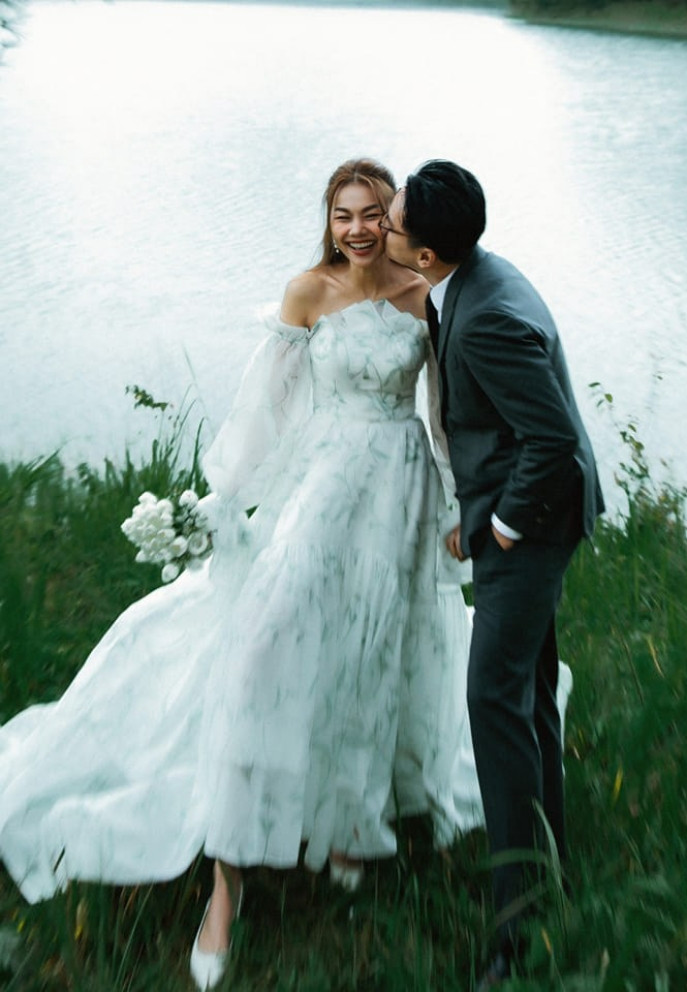 Thanh Hằng và nhạc trưởng Trần Nhật Minh làm đám cưới hồi tháng 10/2023 ở TP.HCM. Nhiều tháng qua, cặp sao xuất hiện cùng nhau tại các sự kiện của làng giải trí. Thanh Hằng nói hôn nhân khiến tính cách của cô trở nên đằm thắm, nhu mì hơn xưa. Cô học được ở Nhật Minh cách luôn giữ điềm tĩnh trong mọi tình huống.
