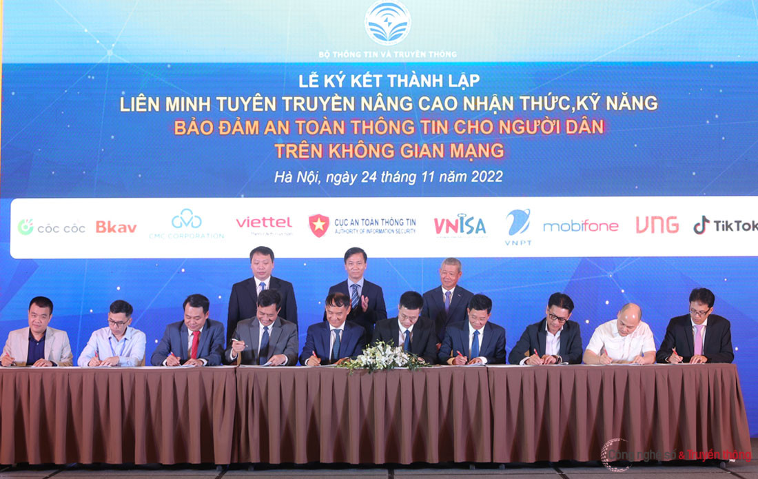 Lễ ký kết thành lập Liên minh tuyên truyền nâng cao nhận thức, kỹ năng bảo đảm an toàn thông tin cho người dân trên không gian mạng vừa diễn ra trong khuôn khổ hội thảo - triển lãm Ngày An toàn thông tin Việt Nam 2022.