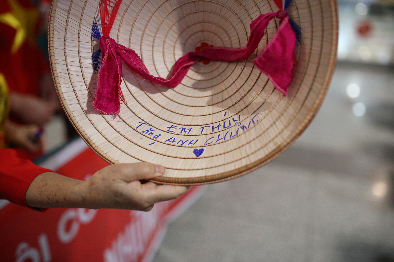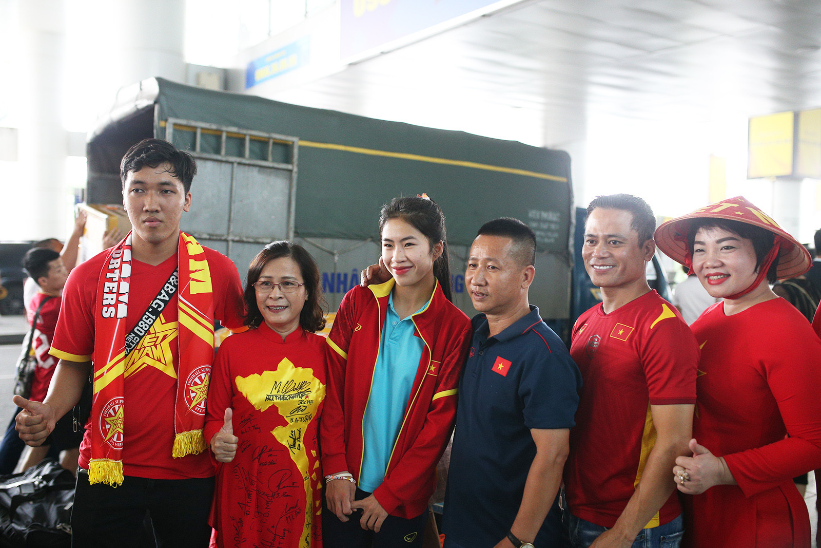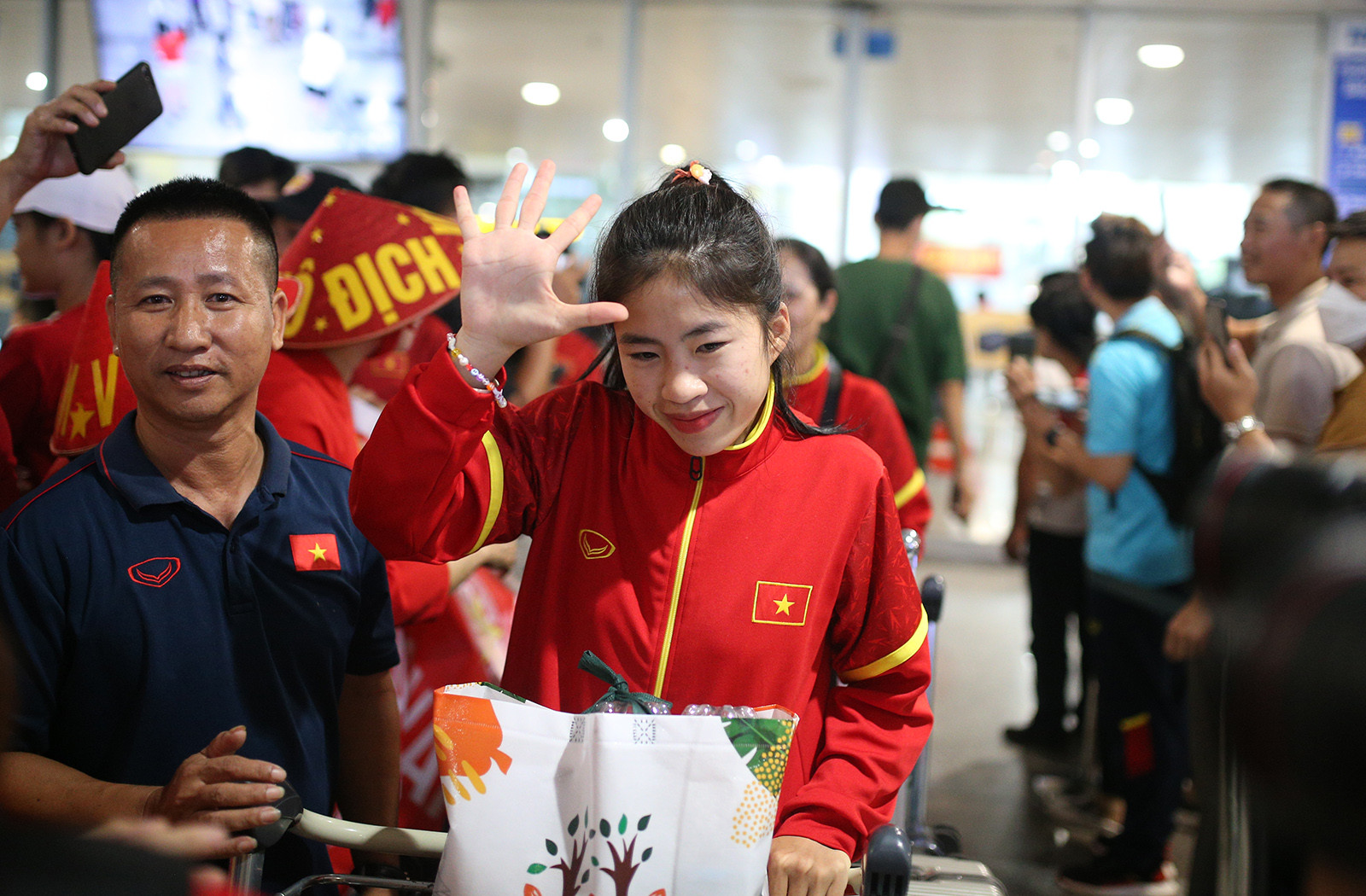 Xuất hiện tại sảnh nhà ga T2 sân bay quốc tế Nội Bài, Hoàng Thị Loan cười rất tươi, vẫy tay chào người hâm mộ. Trung vệ CLB Hà Nội có một kỳ World Cup chơi đầy nỗ lực, cùng tuyển nữ Việt Nam gây ấn tượng mạnh bởi tinh thần chiến đấu kiên cường, không bỏ cuộc.Nụ cười tươi tắn cùng gương mặt xinh đẹp của Hoàng Thị Loan khiến fan hâm mộ ngây ngất. Trung vệ tuyển nữ Việt Nam cũng rất nhiệt tình chụp ảnh chung với các CĐV.Thanh Nhã sự mạnh mẽ, cá tính và cũng rất xinh đẹp trong ngày về nước."Cơn lốc đường biên" là một trong những cầu thủ chơi ấn tượng nhất ở tuyển nữ Việt Nam tại World Cup 2023. Nữ tuyển thủ sinh năm 2001 chắc chắn sẽ còn tiến xa. Có nhiều thông tin một số đội bóng ở châu Âu đang dành sự quan tâm đặc biệt tới Thanh Nhã.Thanh Nhã cùng các đồng đội có kỳ World Cup đáng nhớ trong sự nghiệp thi đấu.HLV Mai Đức Chung cũng được các CĐV "chăm sóc đặc biệt". Thuyền trưởng tuyển nữ Việt Nam chia sẻ: "Về đến sân bay Nội Bài, chúng tôi rất ngạc nhiên và cảm động. Đông đảo khán giả, phóng viên đã đón đội tuyển tại sân. Chúng tôi rất cảm động. Xin cảm ơn CĐV và người dân Việt Nam đã tiếp đón chúng tôi nồng hậu. Tuyển nữ Việt Nam đã có những trải nghiệm đáng nhớ. Chúng tôi được chào cờ, hát Quốc ca Việt Nam trên nước bạn, được mọi người dõi theo. Các cầu thủ cũng được tiếp cận trình độ cao của bóng đá thế giới. Đội còn thiếu sót, phải khắc phục nhiều để tiến bộ. Ở Đông Nam Á, đội tuyển nữ Việt Nam là số 1. Nhưng ở châu Á và thế giới, chúng ta còn khoảng cách và cần nỗ lực hơn. Các cầu thủ nữ Việt Nam đã làm hết sức, thi đấu với quyết tâm cao, nhưng chưa đáp ứng được chuyên môn nên còn khoảng cách".Một CĐV lớn tuổi quen thuộc của bóng đá Việt Nam tặng chiếc nón lá cho HLV Mai Đức Chung.Sau World Cup, HLV Mai Đức Chung và các học trò chỉ có khoảng 1 tuần nghỉ ngơi trước khi tập trung trở lại chuẩn bị cho Asiad 2023 và vòng loại Olympic 2024.