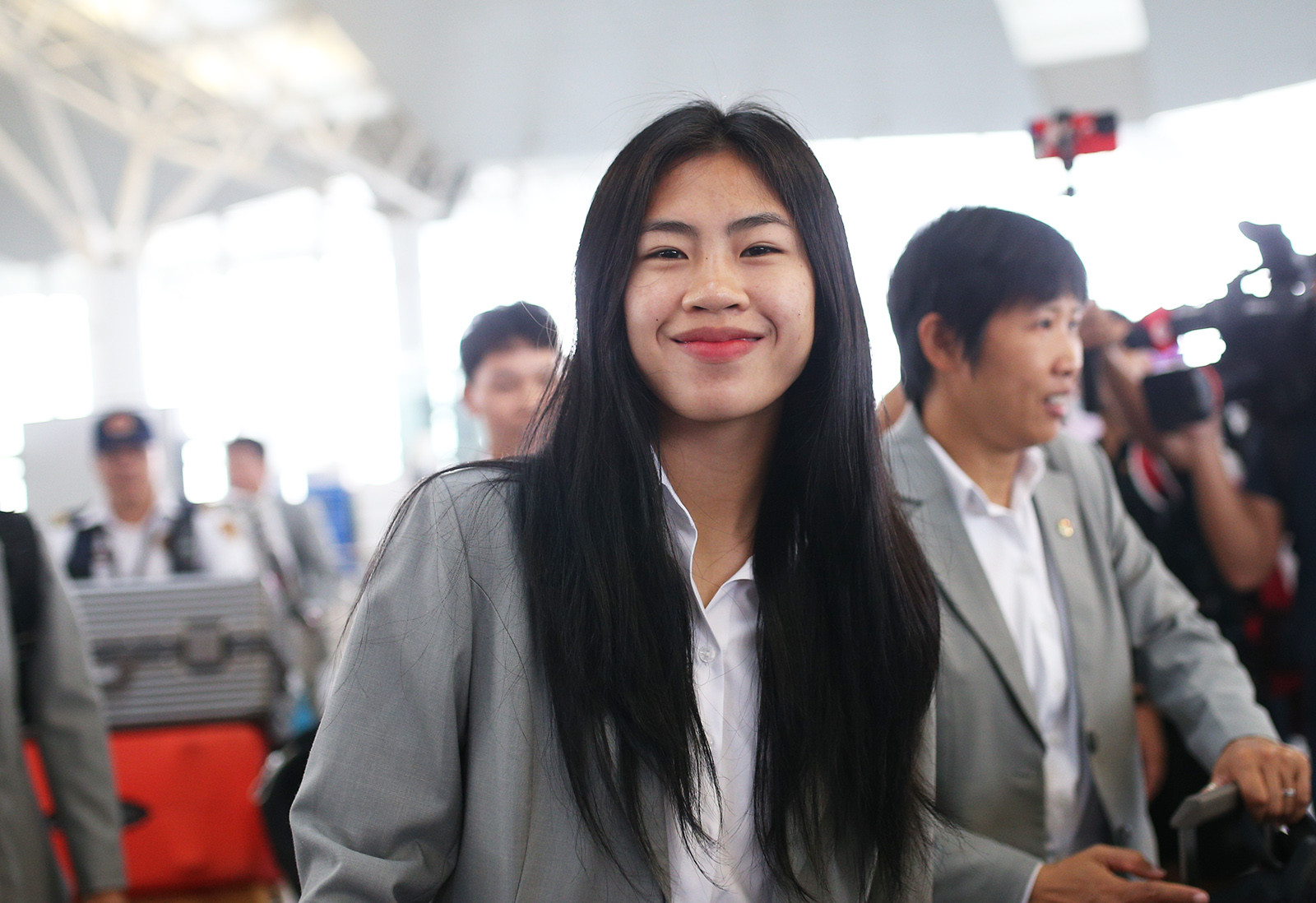 Sáng 5/7, các thành viên tuyển nữ Việt Nam lên đường tới New Zealand dự World Cup 2023.Các nữ tuyển thủ xuất hiện tại sân bay gây sự chú ý đặc biệt.Hoàng Thị Loan cùng các đồng đội diện vest xinh đẹp. Cô gái người Hà Nội cho biết mình cảm thấy hơi lạ lẫm khi mặc vest, nhưng tự tin hơn khi xuất hiện trước người hâm mộ.Hoàng Thị Loan là một trong những gương mặt gây chú ý nhất ở tuyển nữ Việt Nam.Nụ cười đẹp như tỏa nắng của nữ trung vệ.Báo chí dành sự quan tâm đặc biệt tới "hot girl" tuyển nữ Việt Nam.Đây là kỳ World Cup lịch sử với Hoàng Thị Loan và các đồng đội. Thanh Nhã cũng rất xinh đẹp khi mặc vest lên đường dự World Cup 2023.Nữ tuyển thủ được nhiều người hâm mộ "săn đón".Sau bàn thắng ghi vào lưới tuyển Đức ở chuyến tập huấn tại châu Âu, Thanh Nhã rất tự tin tiếp tục lập công ở sân chơi World Cup.HLV Mai Đức Chung được nhiều fan xin chụp ảnh ở sân bay.Chiến lược gia 72 tuổi lộ vẻ đăm chiêu khi tuyển nữ Việt Nam đối mặt với nhiều thử thách lớn ở phía trước. "Lần trước tôi đã có dịp sang New Zealand. Nhưng lần này chắc chắn rất khác vì quốc ca của Việt Nam được cất lên tại World Cup, một giải đấu danh giá. Đó chắc chắn là niềm tự hào với toàn đội", HLV Mai Đức Chung chia sẻ trước giờ lên đường.Tại New Zealand, tuyển nữ Việt Nam đá 2 trận giao hữu gặp chủ nhà New Zealand (10/7) và Tây Ban Nha (14/7) trước khi chính thức tham dự giải đấu. World Cup nữ 2023 diễn ra từ 20/7 đến 20/8 tại Australia và New Zealand. Tuyển nữ Việt Nam nằm ở bảng E, thi đấu tại Newzealand, lần lượt gặp ĐKVĐ Mỹ (22/7), Bồ Đào Nha (27/7) và Hà Lan (1/8).
