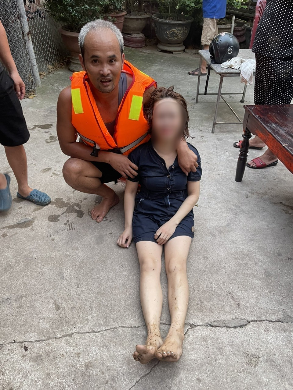 Khi bơi đến gần người bị nạn, Phúc thấy có một người đàn ông phía bờ đối diện đã tiếp cận ứng cứu.