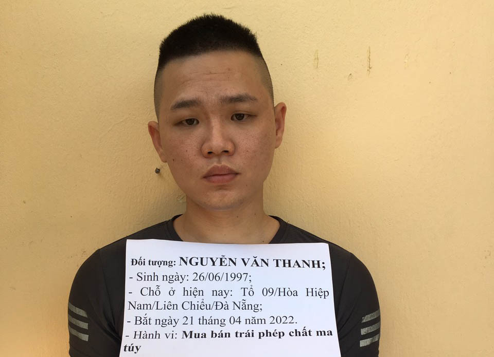 Ngày 22/4, Bộ Chỉ huy Bộ đội biên phòng TP Đà Nẵng cho biết, đang tạm giữ Nguyễn Văn Thanh (25 tuổi, ngụ tại tổ 9, phường Hòa Hiệp Nam, quận Liên Chiểu) để điều tra về hành vi “Mua bán trái phép chất ma túy”.