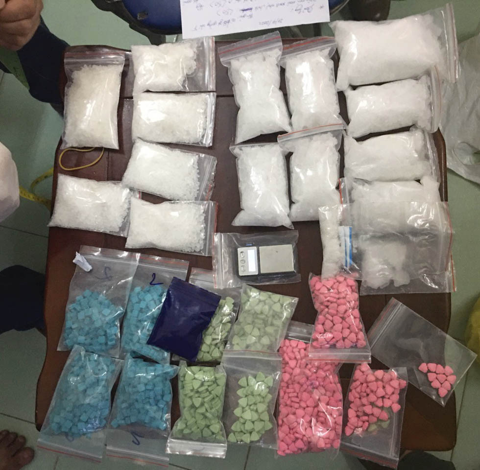 Thanh thừa nhận chuẩn bị mang thuốc lắc đi bán. Khám xét khẩn cấp phòng trọ của Thanh ở tầng 2 ngôi nhà, lực lượng biên phòng thu giữ hơn 2kg ma túy tổng hợp các loại.