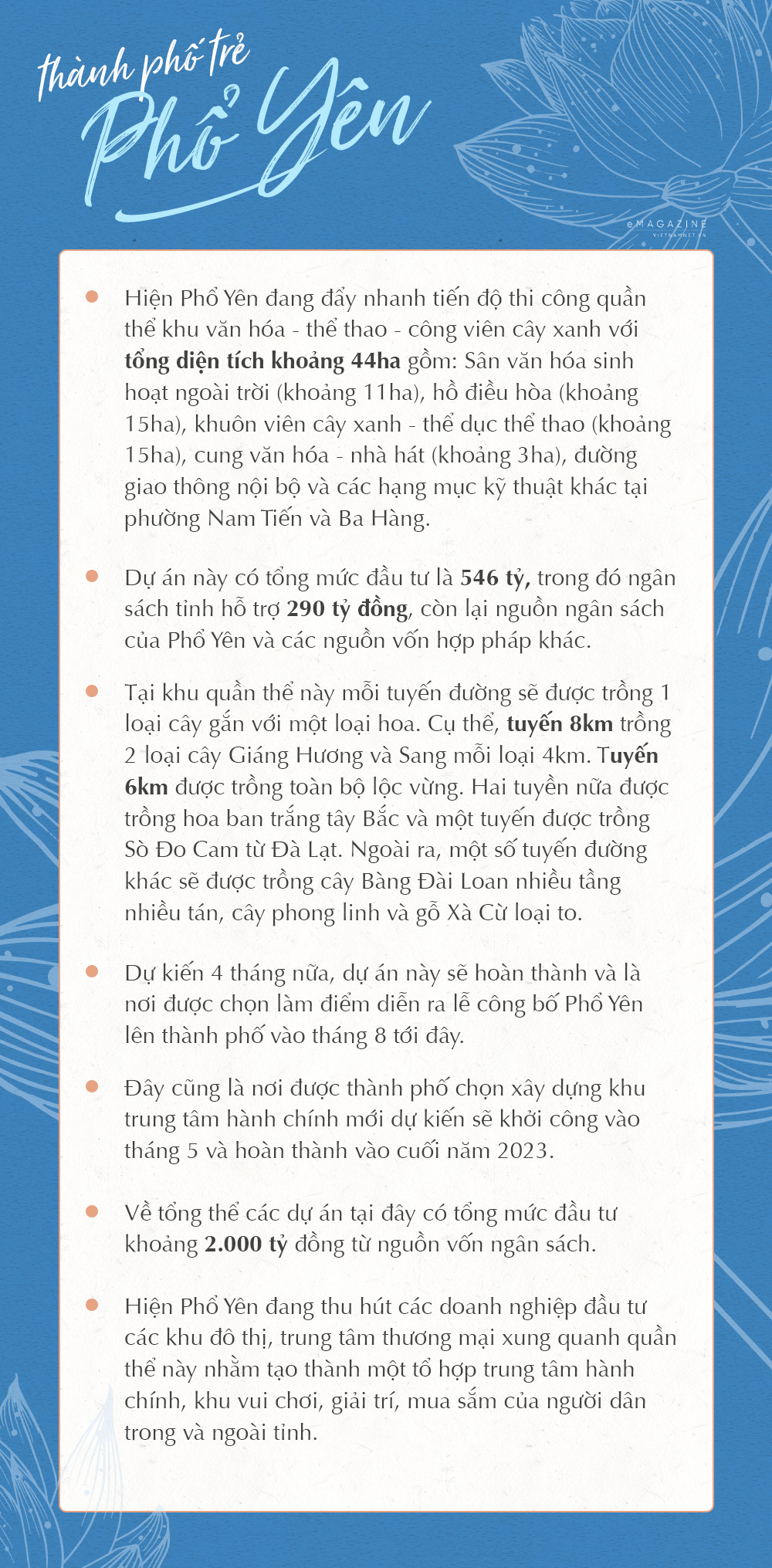 Còn trong tương lai, theo Nghị quyết của tỉnh, thành phố hướng đến mục tiêu đến năm 2025 thu nhập bình quân đầu người là 130 triệu đồng/người. Những ngày này chúng tôi làm việc gần như quên ngày, quên đêm và không có ngày nghỉ để sớm định hình một thành phố Phổ Yên năng động, sáng tạo, hấp dẫn.