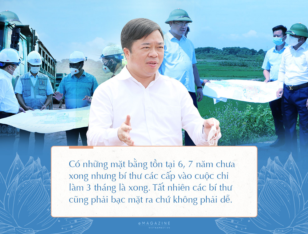 Thế là bí thư các cấp ra tay làm, mọi việc ngon hết. Có những mặt bằng tồn tại 6, 7 năm cuối cùng các ông ra tay chỉ làm 3 tháng là xong. Tất nhiên các bí thư cũng phải bạc mặt ra chứ không phải dễ; phải lăn lộn ngày đêm, làm nhiệt huyết mới ra được chứ không phải nói một câu là xong.