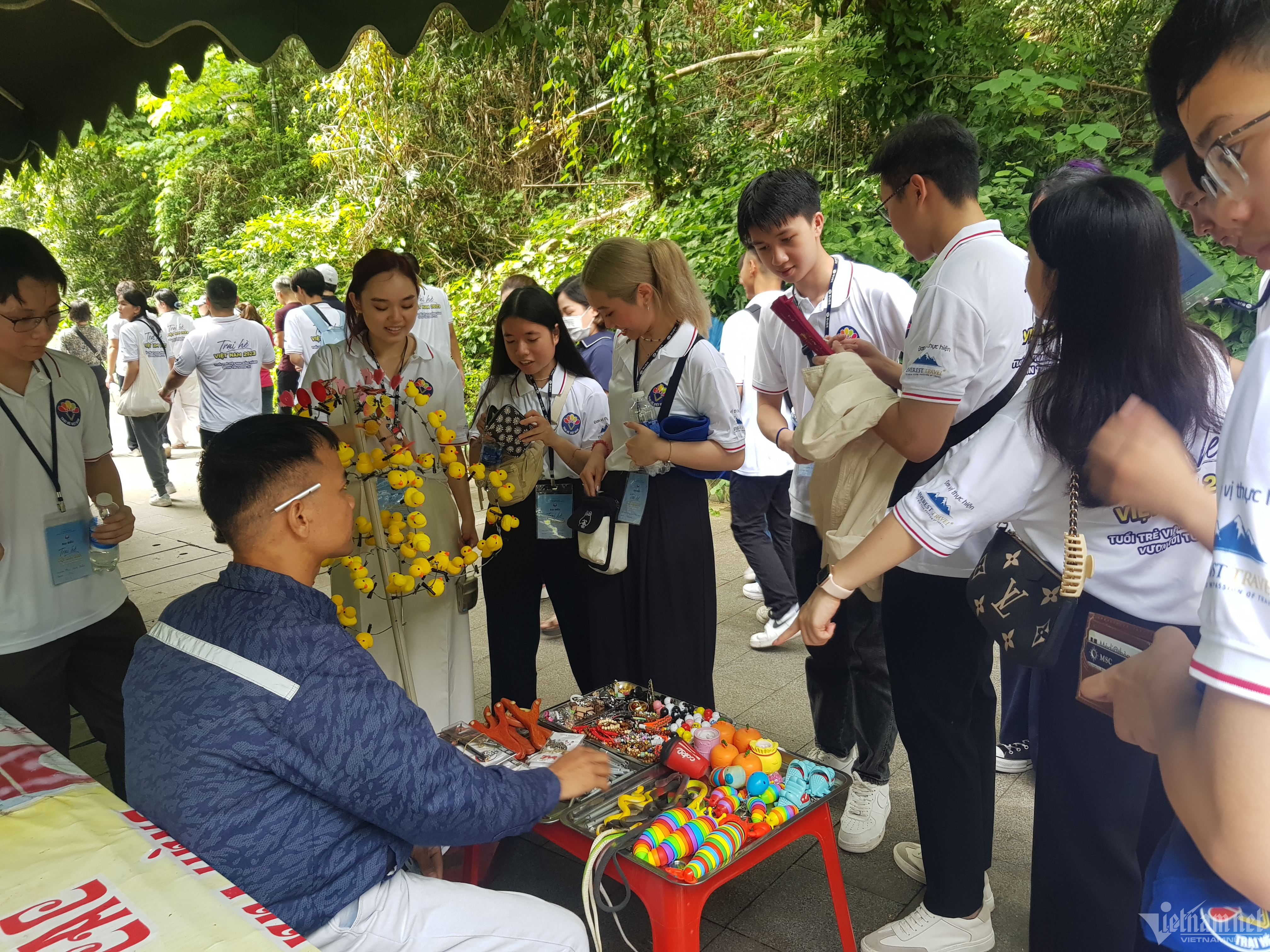 Các em thanh, thiếu niên kiều bào thăm quan một số điểm trong khu Di tích và mua đồ lưu niệm.