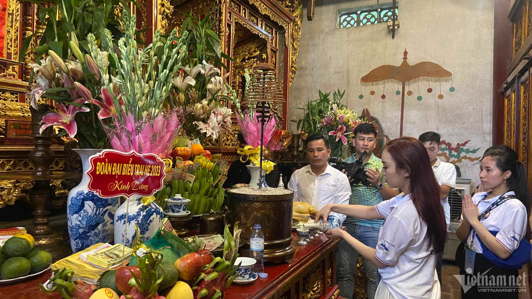 Đoàn đại biểu thanh, thiếu niên kiều bào cùng lãnh đạo Vụ Thông tin Văn hóa – Uỷ ban Nhà nước về người Việt Nam ở nước ngoài, Bộ Ngoại giao, Sở Ngoại vụ Phú Thọ dâng hương trên đền Thượng.