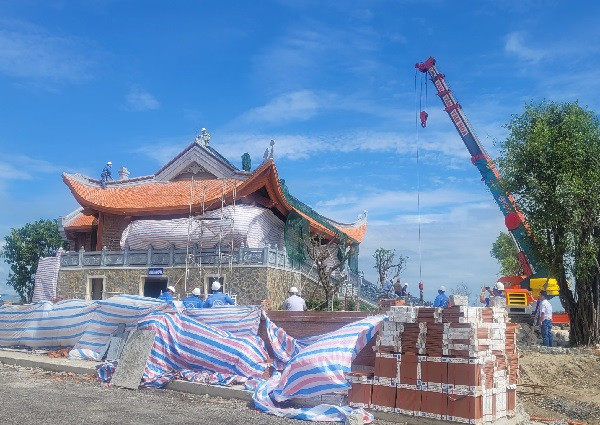 Tại hiện trường ghi nhận, trên khu đất có diện tích 300m2 hình thành một công trình kết cấu nền đá, tường gạch, đã lợp mái ngói đỏ, có kiến trúc dạng miếu thờ đang hoàn thiện phần thô.