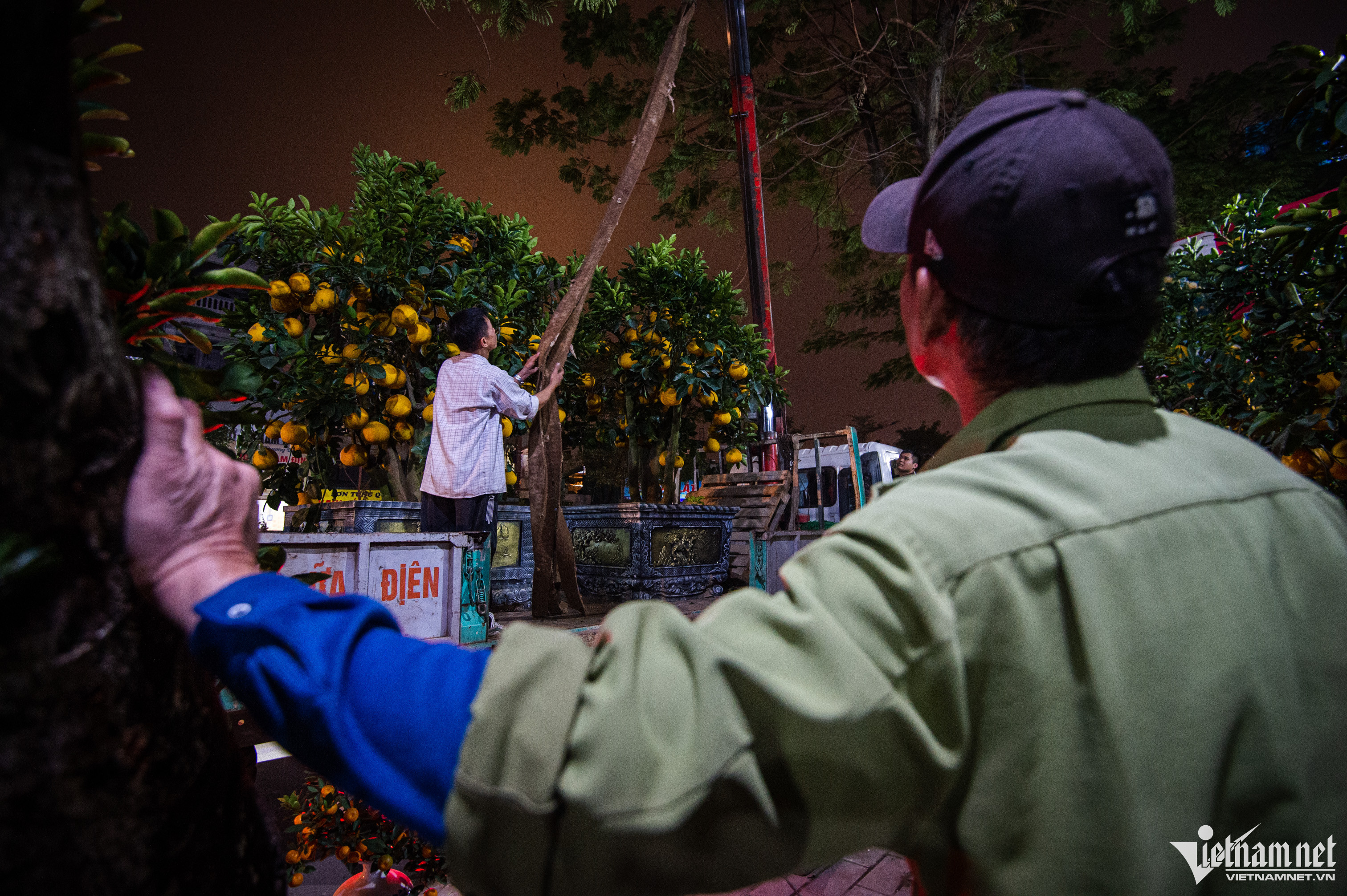 Quanh năm, anh Vàng Văn Chi (dân tộc Tày, Cao Bằng) đi làm thợ phụ hồ. Dịp giáp Tết, anh bàn giao công trình xong rồi cùng bạn bè góp vốn kinh doanh hoa mai. "Mấy anh em tôi đều là người dân tộc. Cuối năm mạnh dạn kinh doanh hoa Tết, hy vọng kiếm được chút ít", anh Chi nói. Đêm nay, anh thức thâu đêm để trông cây rồi sáng hôm sau ngủ bù.