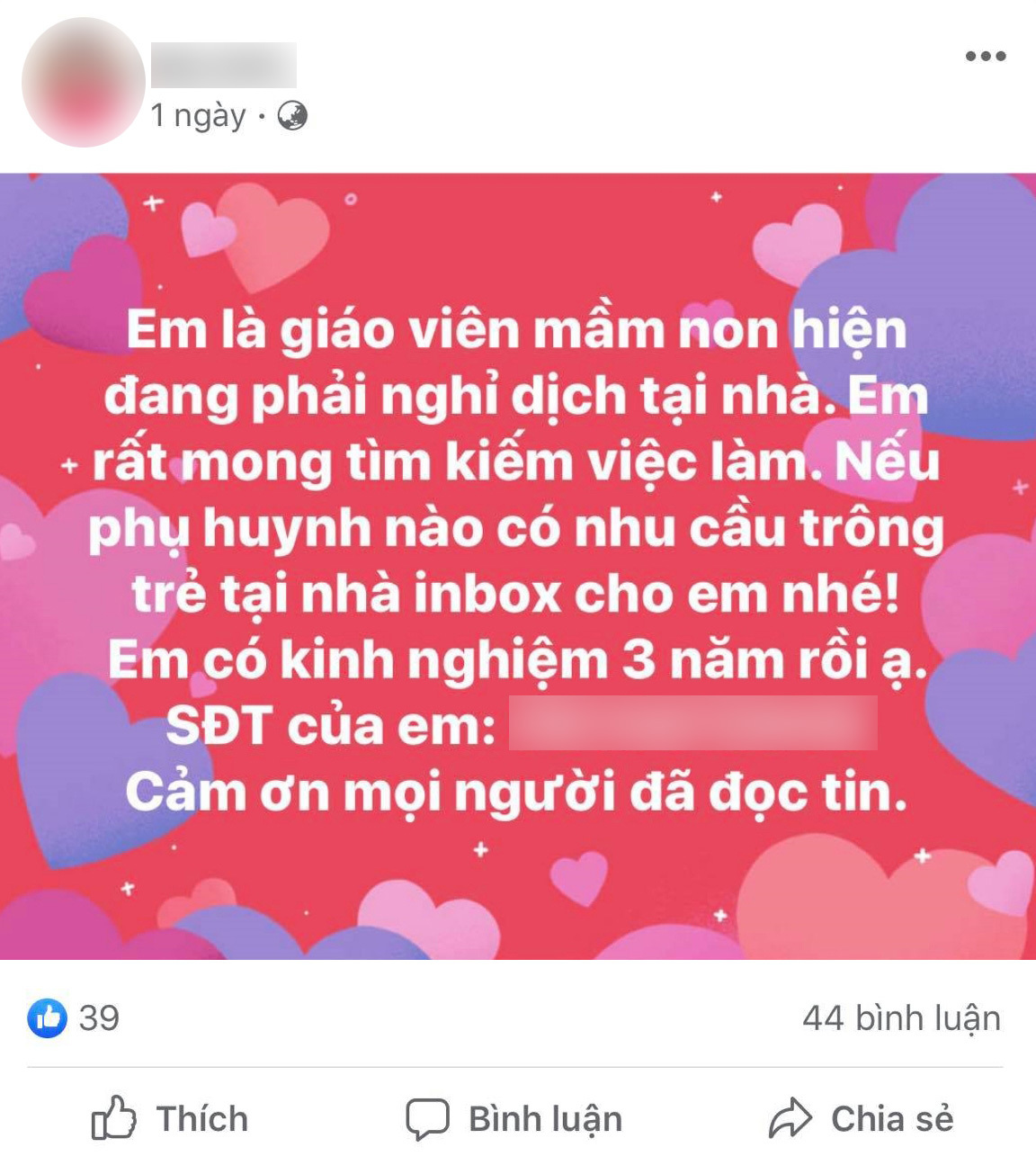 Để duy trì thu nhập, cô giáo trẻ chủ động lên trên mạng xã hội, tham gia gần 20 hội nhóm tìm kiếm việc làm.