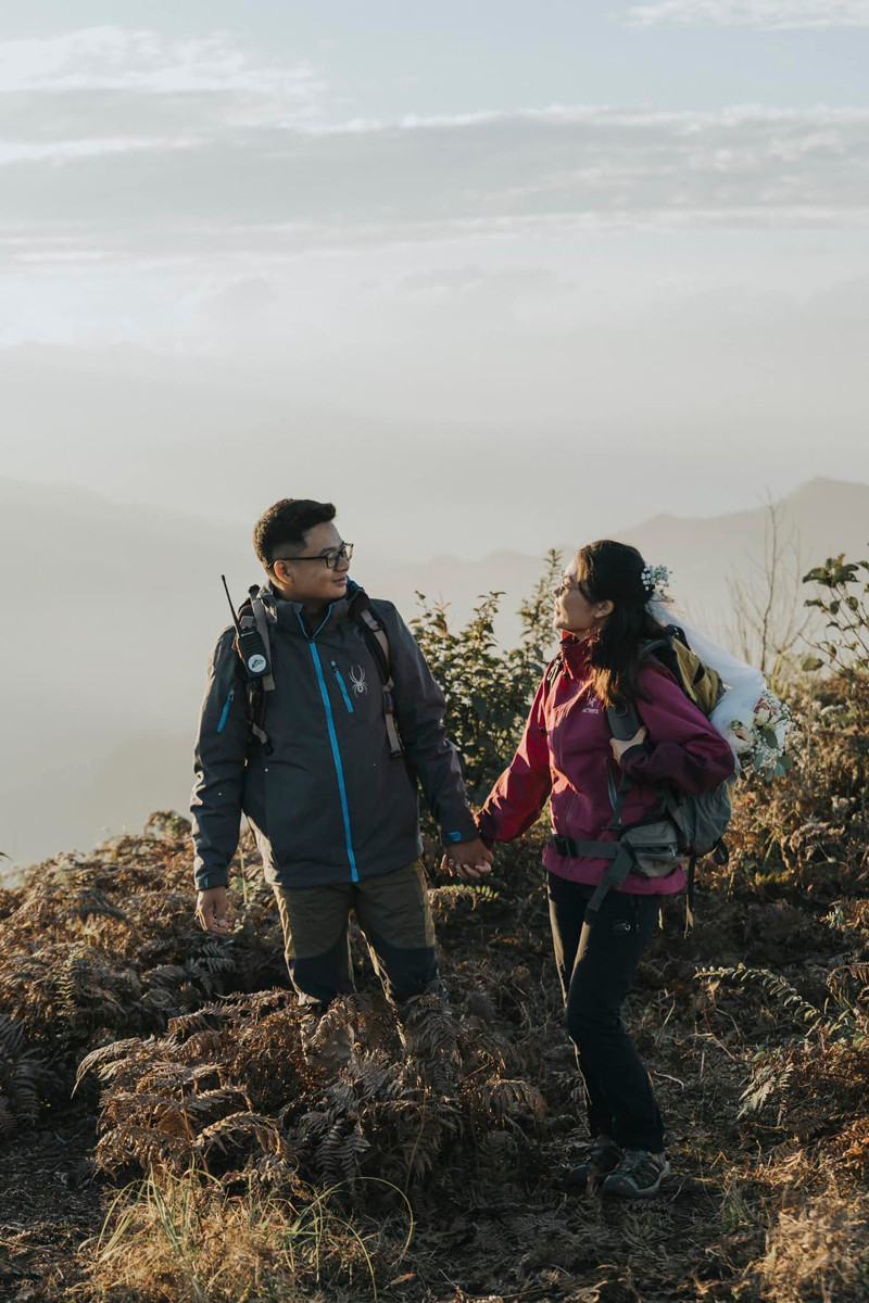 “Tụi mình thường xuyên đi trekking và đây là cung đường khá quen thuộc nên không khó khăn lắm. Hơn nữa, tụi mình có 3 người bạn hỗ trợ nên việc chụp ảnh cưới khá thuận lợi”, Phương Thảo chia sẻ.