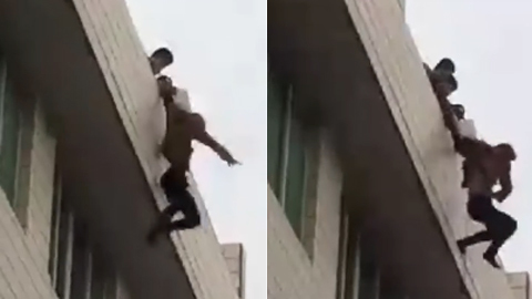 Phút kinh hoàng thanh niên nhảy lầu vì thất tình