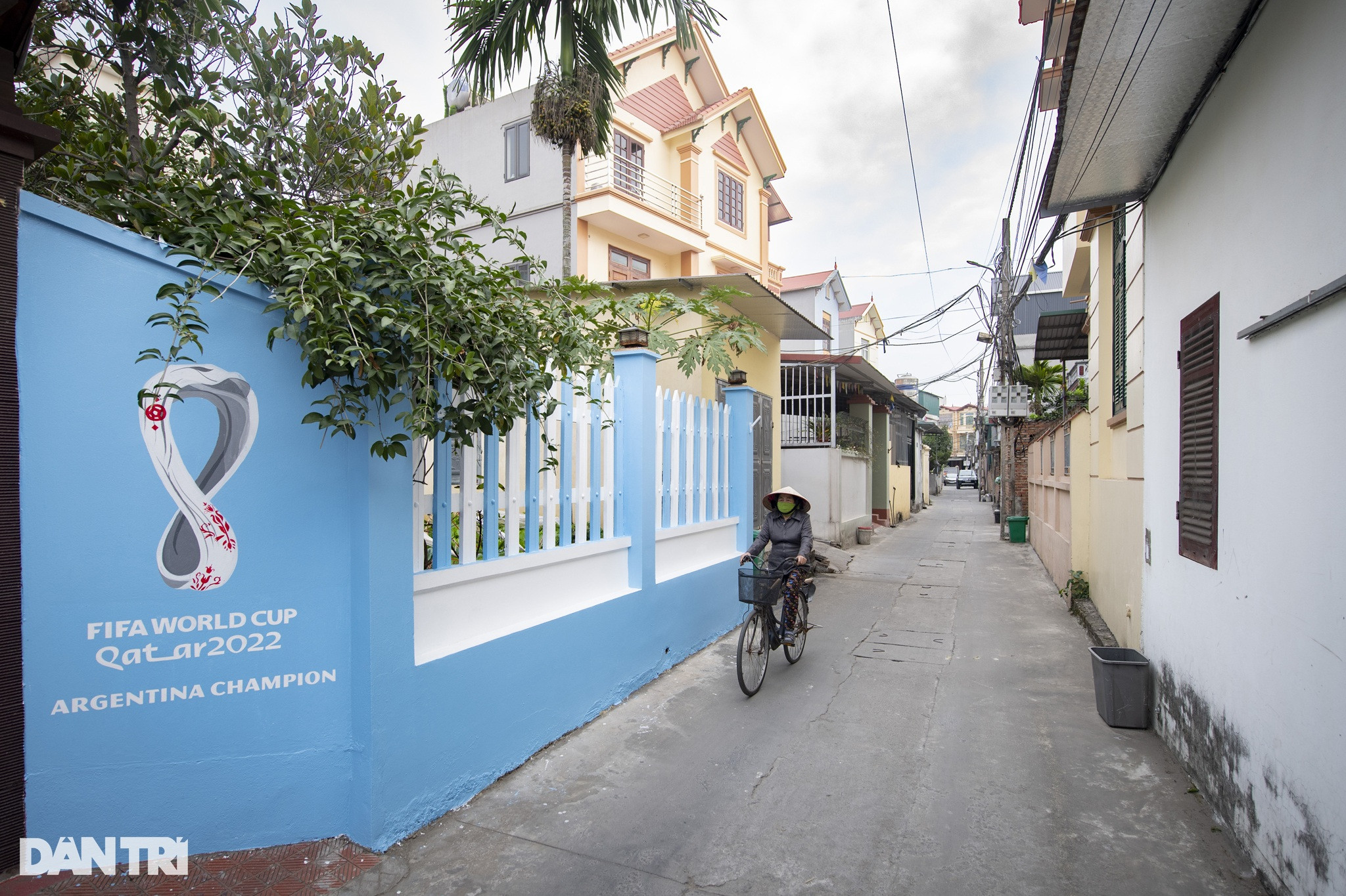 Thầy giáo Nguyễn Duy Nhất (32 tuổi, huyện Đông Anh, Hà Nội) ngày 20/12 gây "sốt" mạng xã hội khi chia sẻ hình ảnh tường nhà vẽ cầu thủ Messi nâng và hôn cúp vô địch World Cup trên nền xanh trắng đặc trưng của đội tuyển Argentina.