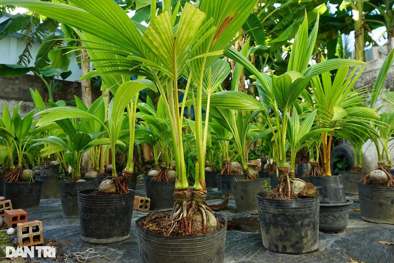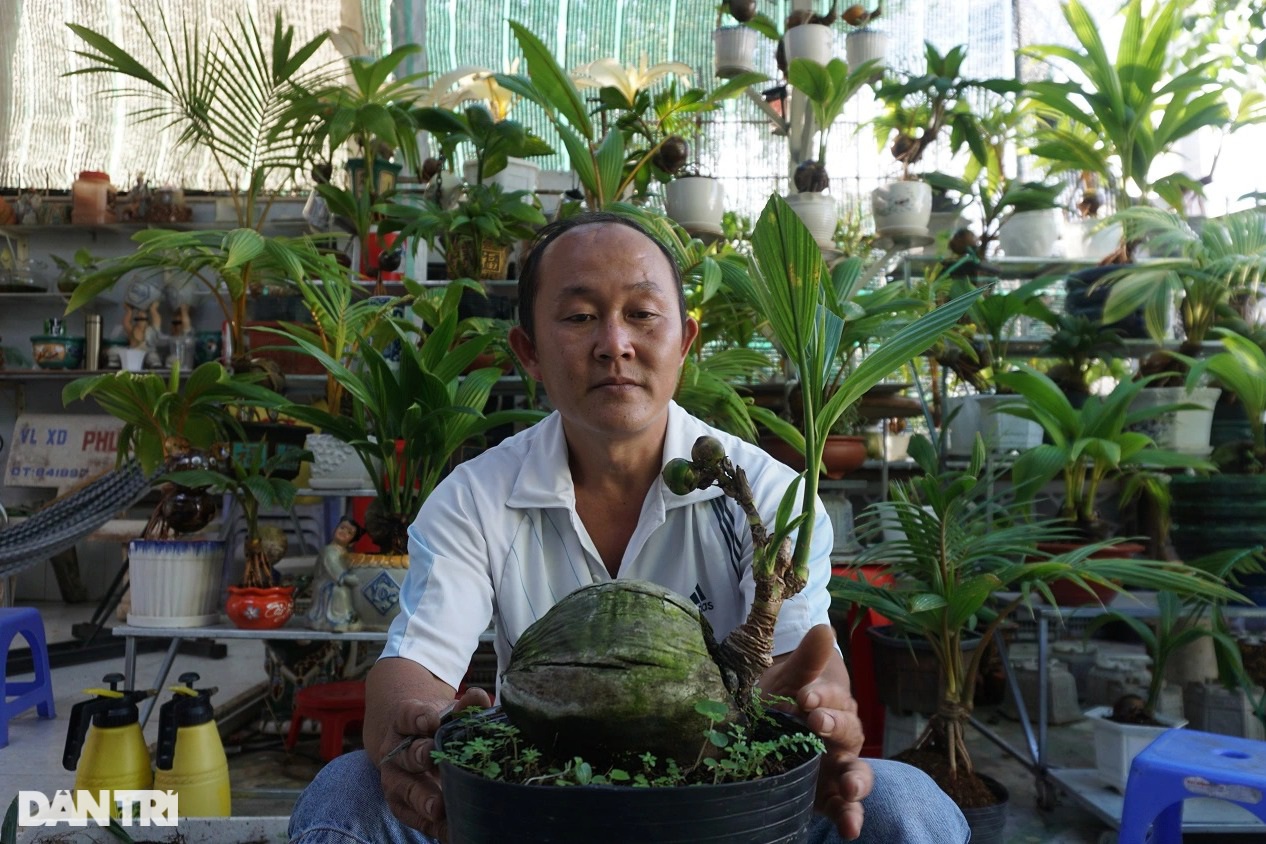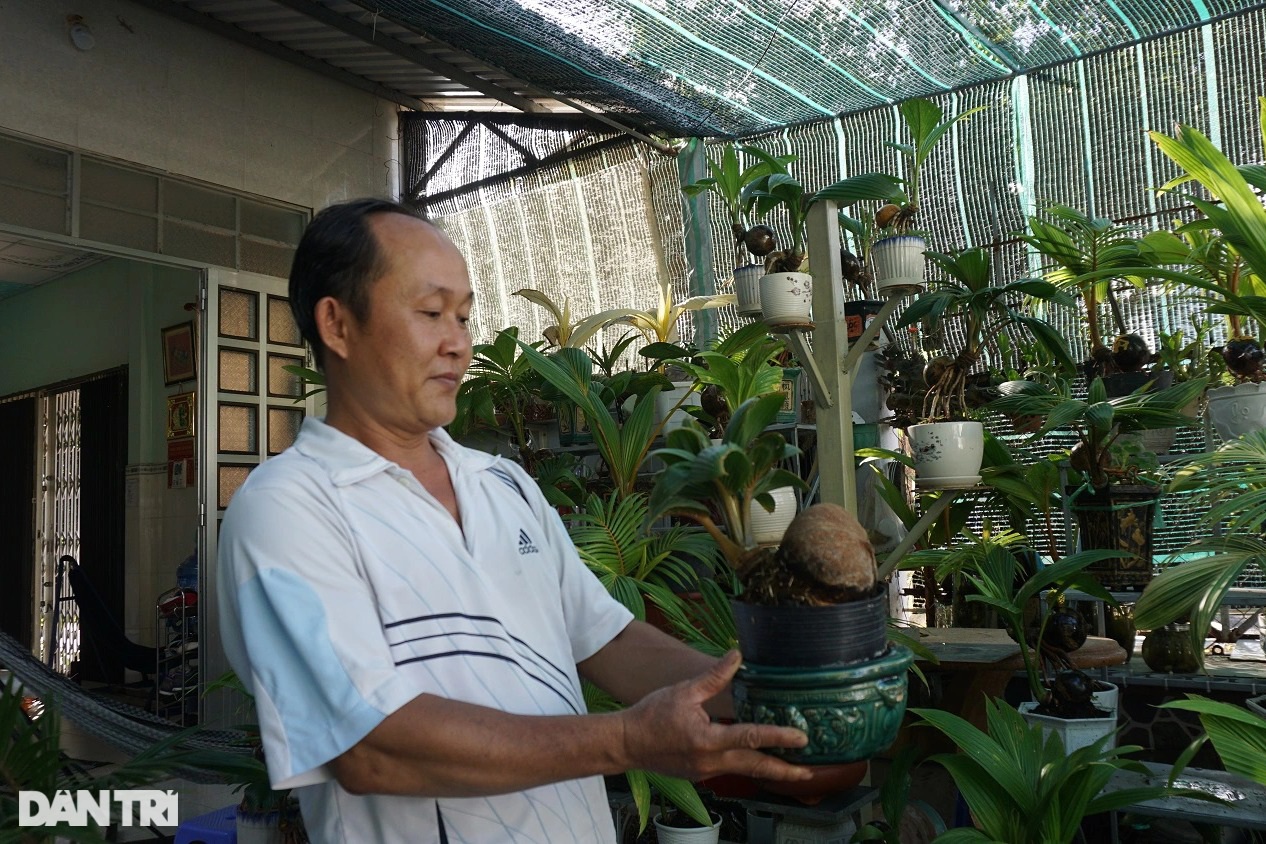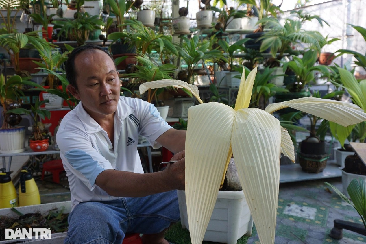 Chăm sóc dừa khó hơn cây cảnh khác, dao kéo nhiều nó chết, không chiết ghép gì được, thậm chí tưới thừa nước cũng hỏng cây", anh Ngọc chia sẻ.