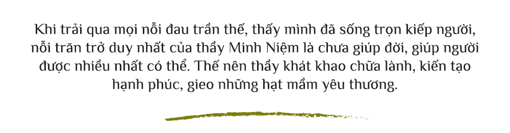Sau hành trình tu bụi là thầy thấy sống hết kiếp người rồi, thấy đã rồi. Những gì cần có trong cuộc đời thầy cũng có đủ hết. Cái còn lại chưa làm được là giúp đời, giúp người nhiều nhất có thể thôi”.