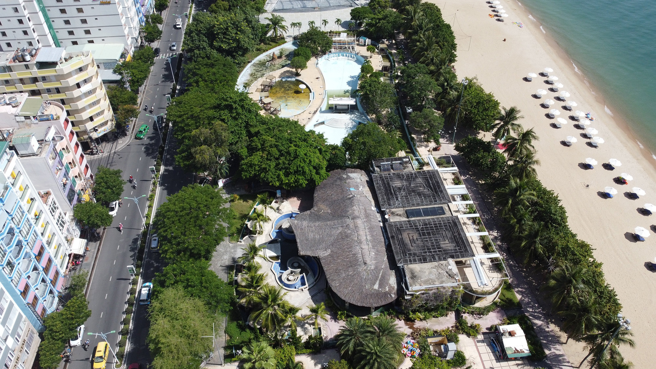 Chủ đầu tư sẽ thực hiện các hạng mục nhà hàng, hồ bơi để phục vụ khách. Đến nay, phần công viên chưa được doanh nghiệp hoàn thiện như thiết kế, các hạng mục thuộc công viên chưa bàn giao cho TP. Nha Trang quản lý. Đơn vị trên cũng không tổ chức kinh doanh, xung quanh có rào vây che khuất tầm nhìn ra biển. Công trình nằm ngổn ngang, không bảo vệ trông coi, một số hạng mục để lâu ngày, nay đã xuống cấp, hư hại.