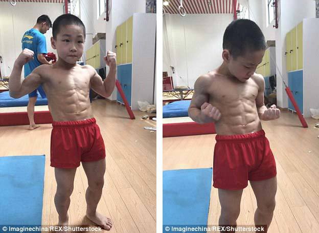 Một vận động viên nhí người Trung Quốc đã nhanh chóng trở nên nổi tiếng sau khi các bức ảnh về cơ bụng tám múi của cậu bé được lan truyền trên mạng.