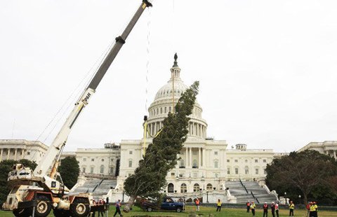 Trong ảnh: Cây thông 118 năm tuổi đã được đưa tới Đồi Capitol ở thủ đô Washington hôm 28/11.