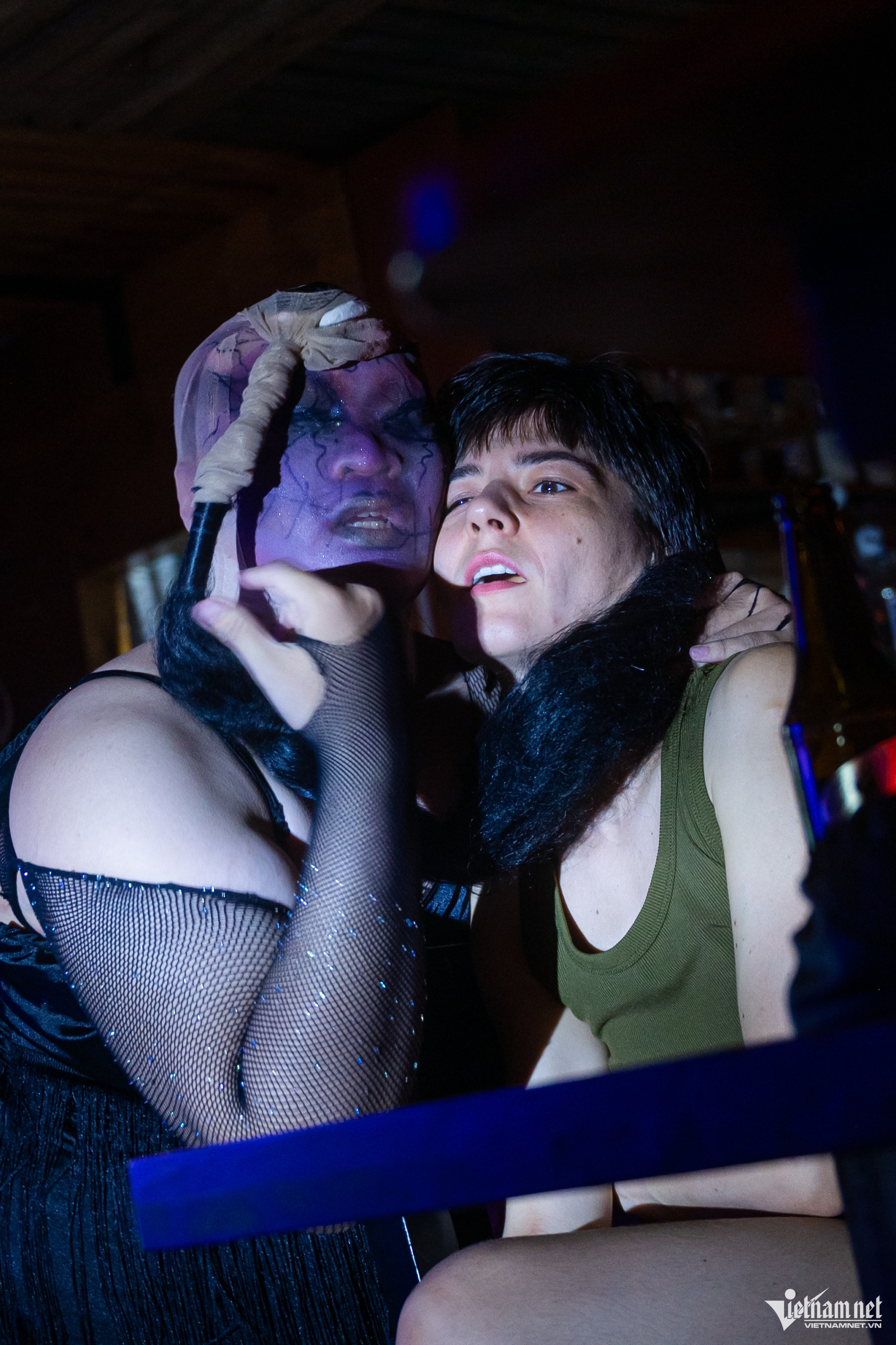Tiết mục của các nghệ sĩ drag queen gen Z trong đêm diễn Halloween này được lấy ý tưởng từ nhiều hình tượng như Hannibal Lecter, Hồ ly... với yếu tố kinh dị và những hoá trang ấn tượng.