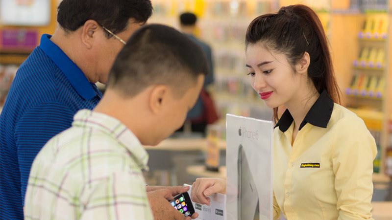 Cửa hàng Thế giới di động ở Campuchia bớt “hoành tráng” hơn để phù hợp văn hoá mua sắm bản địa