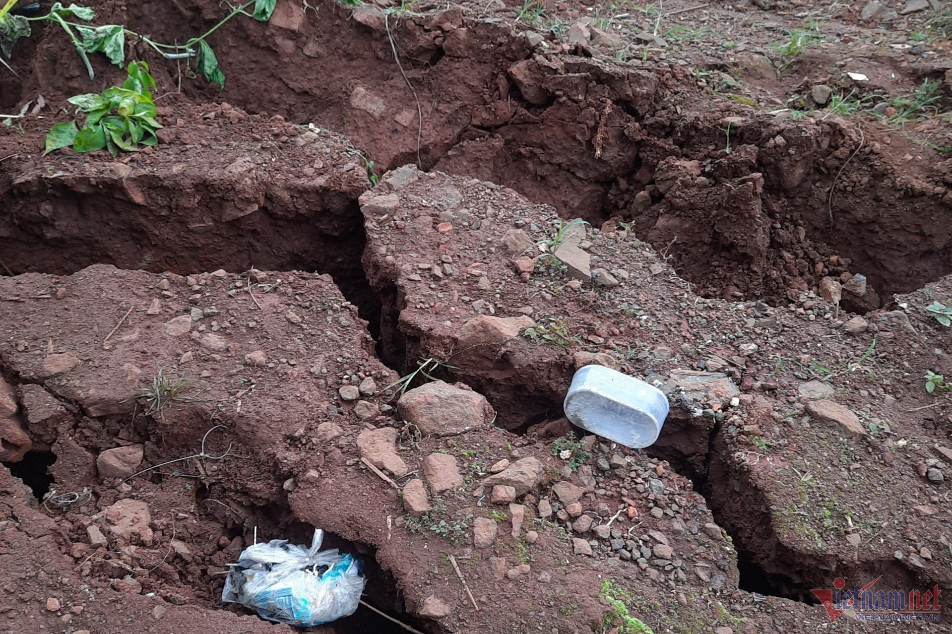 Đến sáng 1/8, người dân phát hiện đất bị nứt gãy nên báo chính quyền. Hiện các vết nứt này ngày càng to ra và kéo dài hơn rất nhiều so với lúc mới phát hiện.