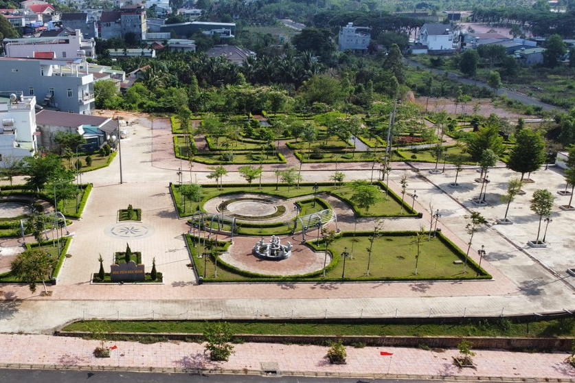 Hình ảnh ghi nhận tại Công trình hoa viên cây xanh khu vực cầu vượt bộ đội biên phòng tỉnh Đắk Nông chiều 30/5: