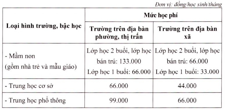 Cụ thể, mức thu học phí bậc mầm non, phổ thông trên địa bàn tỉnh với hình thức học trực tiếp như sau: