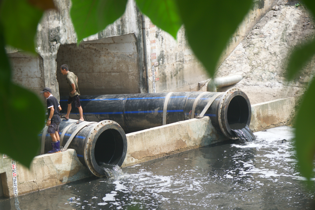 Phần nước thải trong kênh được thiết kế riêng đưa về Nhà máy nước thải Yên Xá để xử lý. Từ ngày 15/8, đơn vị thi công đã hoàn tất việc thu gom toàn bộ 245 cửa xả trên sông. Hiện công suất nhà máy đạt 200.000m³/ngày đêm, đủ để xử lý toàn bộ lượng nước thải dọc tuyến sông.