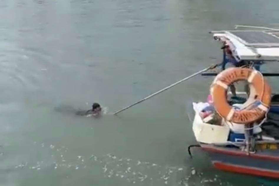 Một tàu cá của ngư dân gần đó nhìn thấy sự việc đã nhanh chóng tới hiện trường để đưa nạn nhân lên bờ.