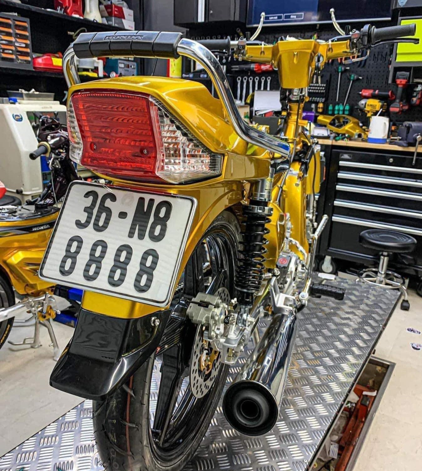 Sau khi hoàn tất thủ tục sang tên, chiếc xe máy Retot 100cc được anh Tuấn đưa vào Nam đầu tư "độ" lên đời thành xe Honda Dream với chi phí xấp xỉ 1 tỷ đồng. Vì vậy, sau khi "lột xác" thành Honda Dream với dàn đồ chơi hàng hiệu đắt đỏ, chiếc xe càng trở nên thu hút khi đi kèm tấm biển số tứ quý 8 siêu đẹp.