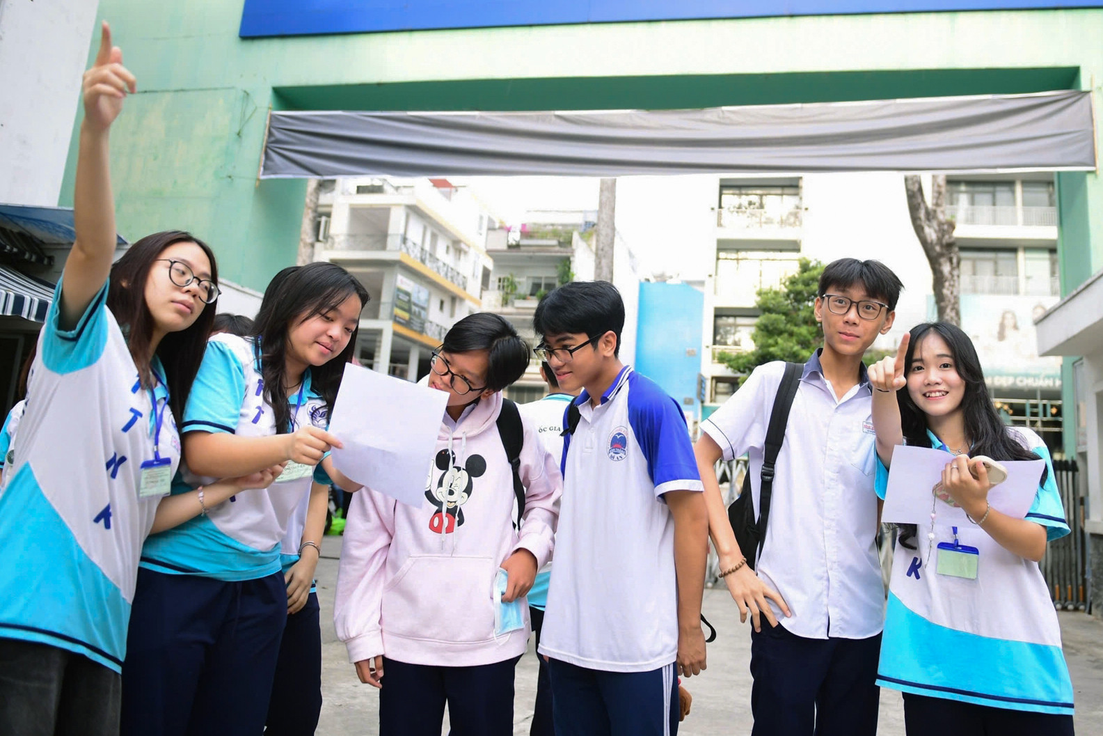 Môn thi đầu tiên trong sáng là Ngữ văn và Tiếng Anh. Các cô cậu học trò sôi nổi trước giờ thi.