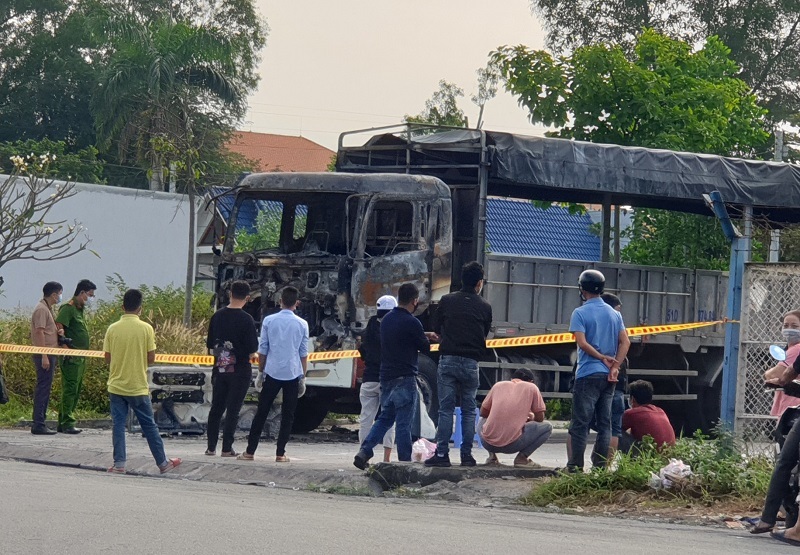 Lúc này, mọi người chạy tới hỗ trợ dập lửa nhưng cửa bị khóa từ bên trong. Đến khi lửa tắt thì phát hiện một người đàn ông chết cháy bên trong, xe tải vẫn nổ máy.
