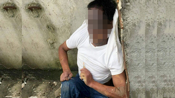 Người đàn ông chết trong tư thế quỳ gối, tay cầm kim tiêm