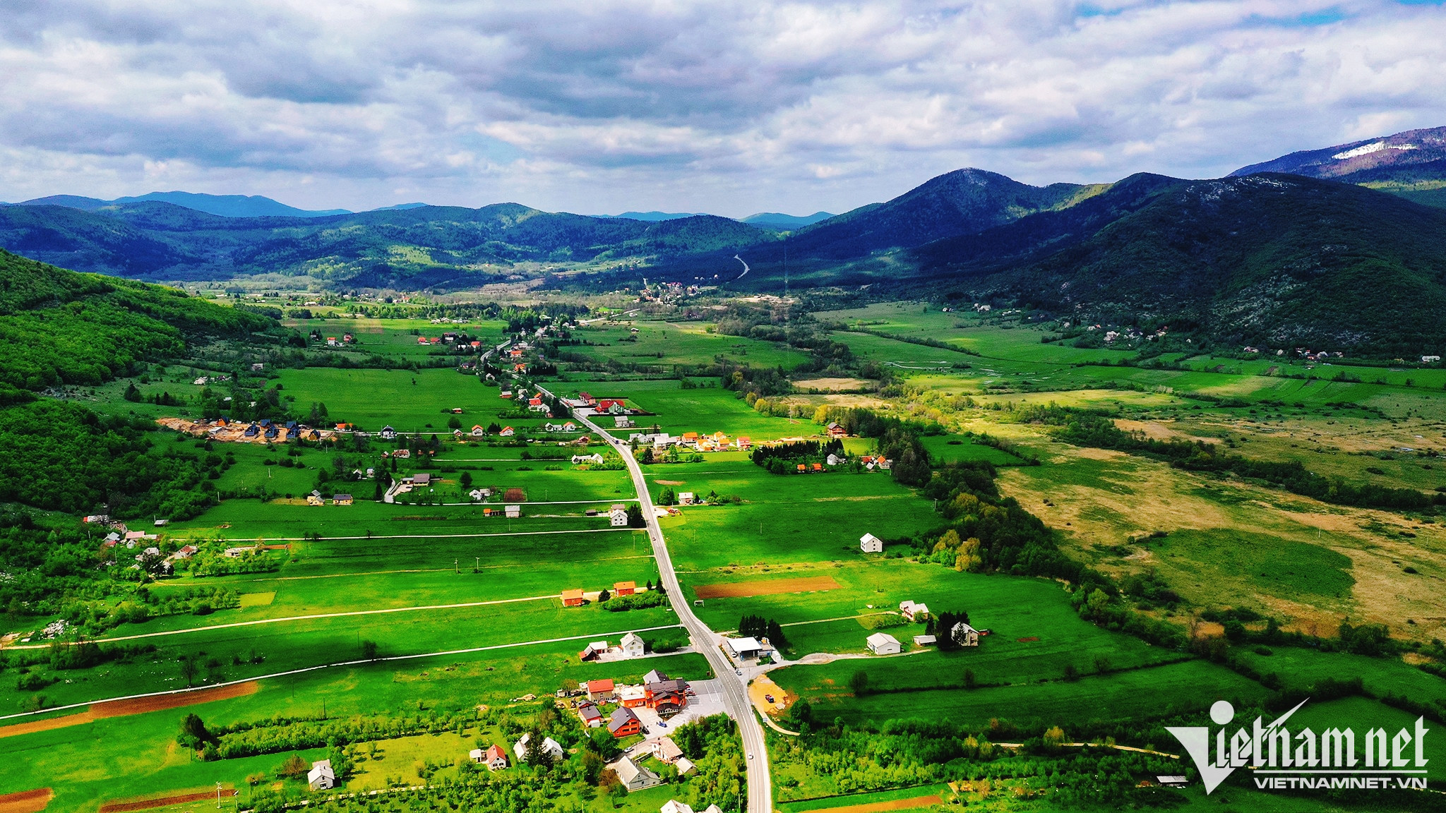 Những ngôi làng bên triền núi trong sương mù cuối thu ở Nam Âu thấp thoáng chóp nhà thờ và bóng lâu đài trên ngọn đồi, dòng suối trong xanh uốn quanh khiến cảnh quan như trong tranh vẽ, tưởng không phải thực.