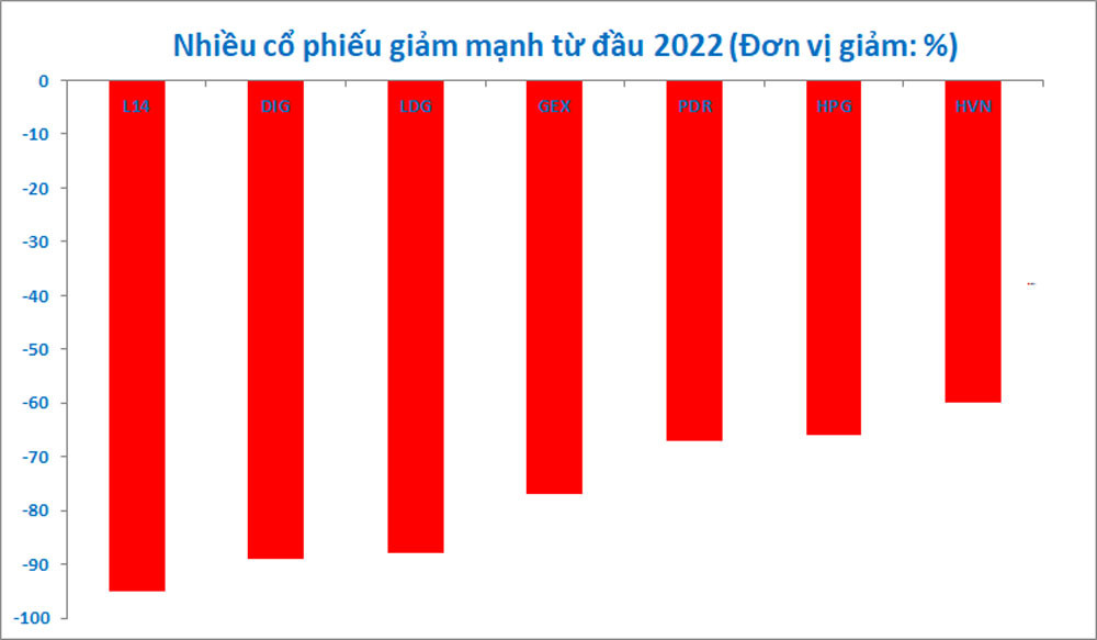 Thị trường chứng khoán ghi nhận nhiều cổ phiếu giảm giá rất mạnh từ đầu năm tới nay.